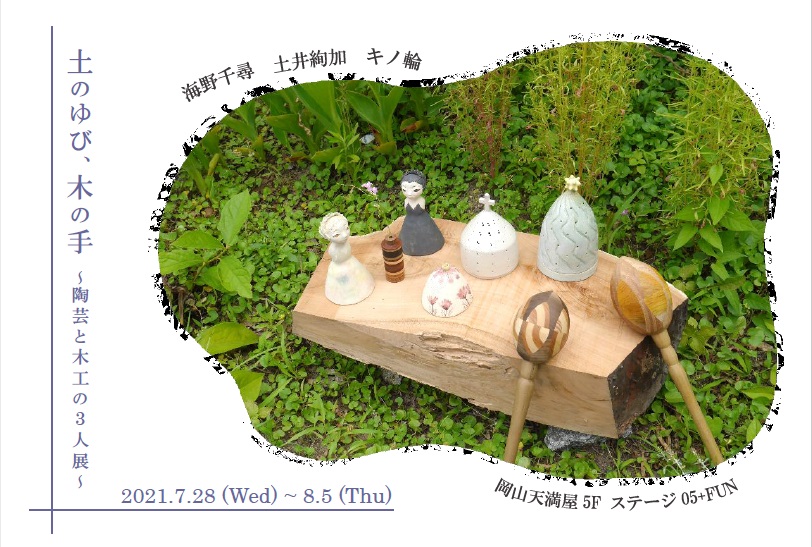土のゆび、木の手2 ~陶芸と木工の3人展~ 2021.7.28(水)~ 8.5(木) 岡山天満屋5Fステージ05+FUN 2024年6月13日 投稿先 展示 展示とお知らせ ← 過去の投稿へ 次の投稿へ →